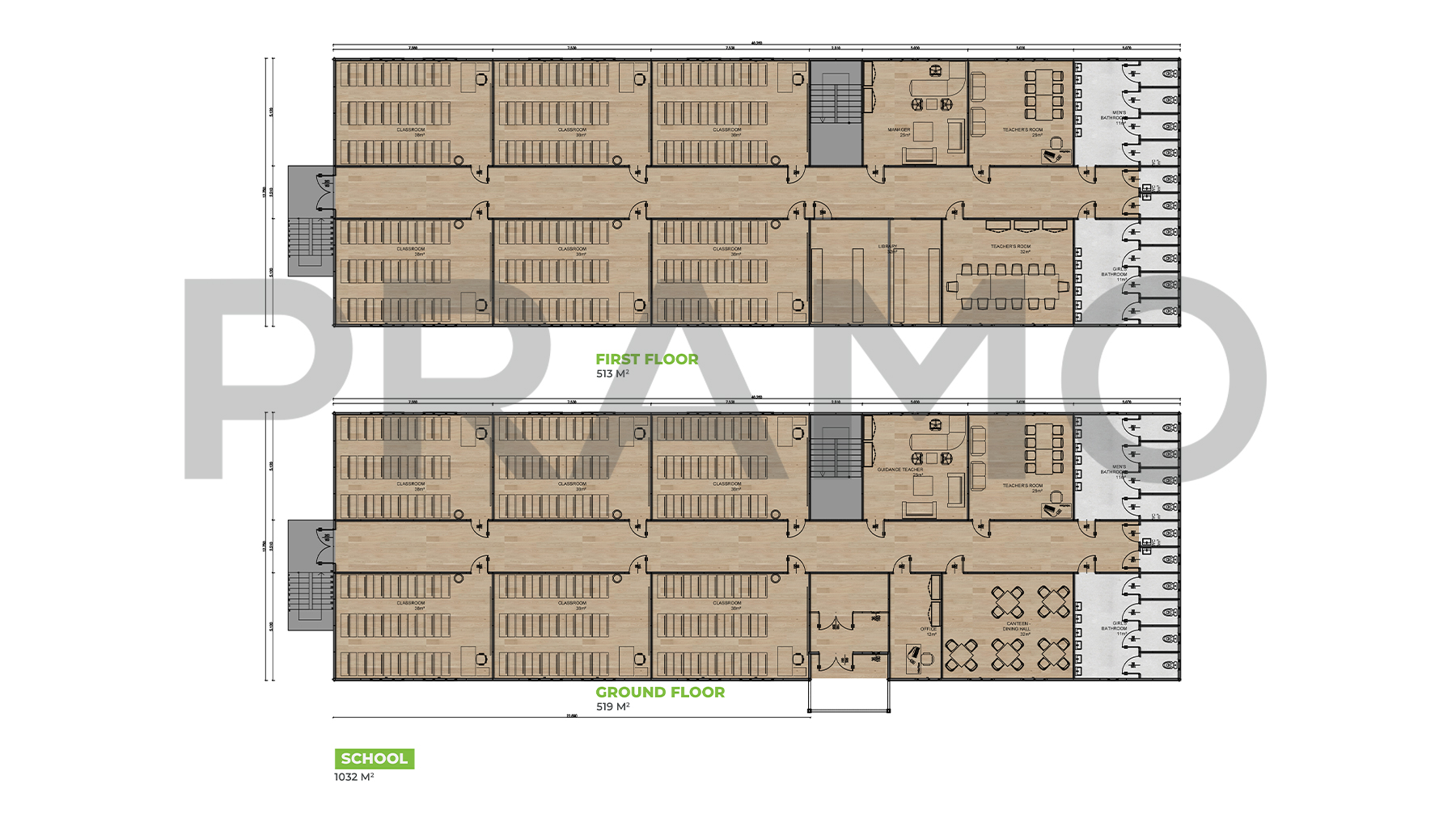مباني مدرسية جاهزة بمساحة 1032 متر مربع