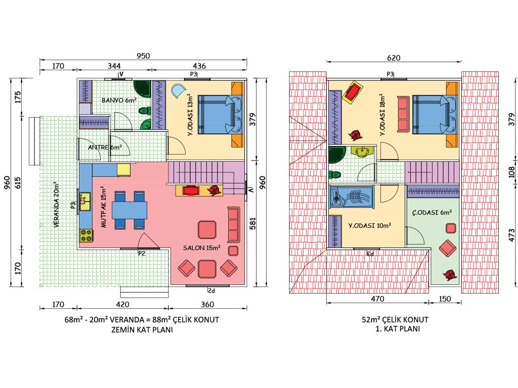 140 متر مربع من المساكن الفولاذية المكونة من طابقين