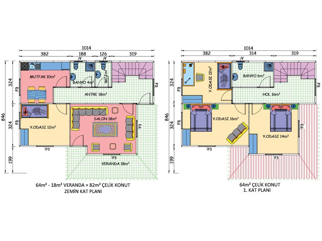 146 متر مربع من المساكن الفولاذية المكونة من طابقين
