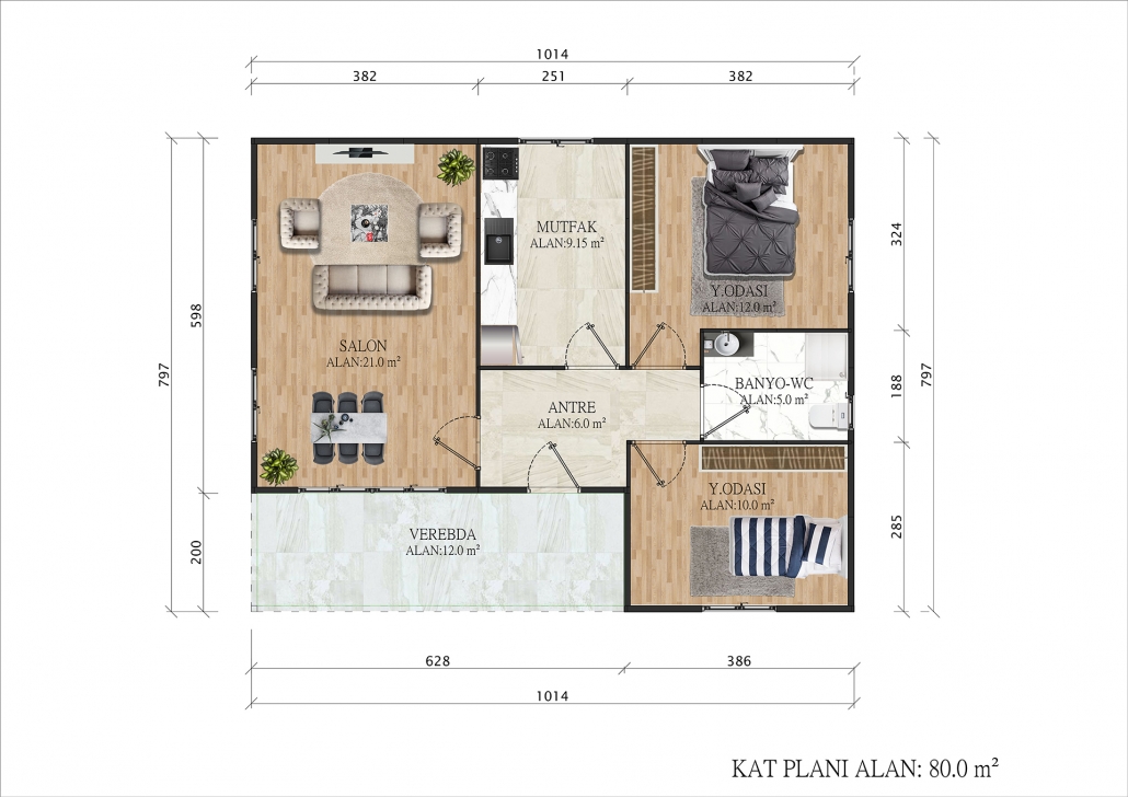 80 متر مربع من المساكن الجاهزة المكونة من طابق واحد