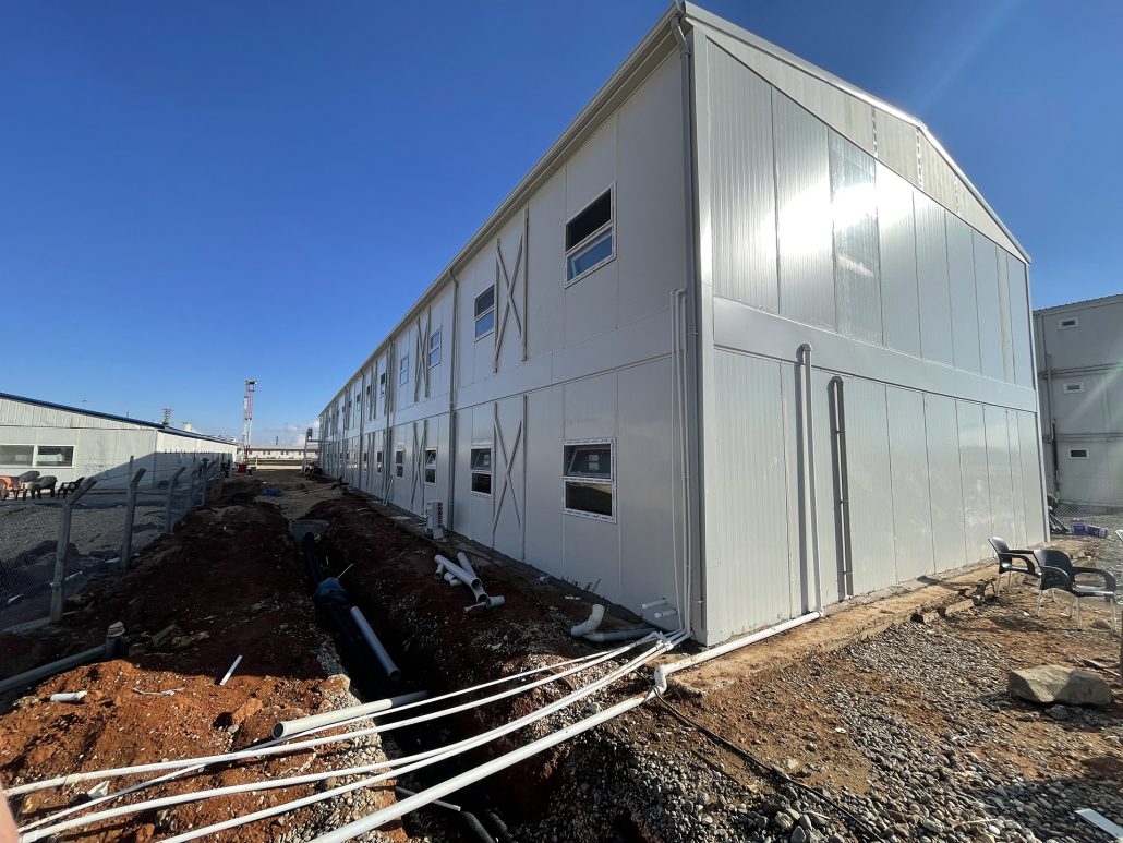 Gaziantep City Hospital Project Double Storey Prefabricated Dining Hall Building is a successful example of Pramo Prefabrik’s modern and functional solutions for the healthcare sector. In this project, a double storey prefabricated structure was built so that hospital staff could eat in a comfortable and safe environment. The building, which was built using light steel construction, is earthquake resistant and durable, which ensures that the project is solid and reliable.